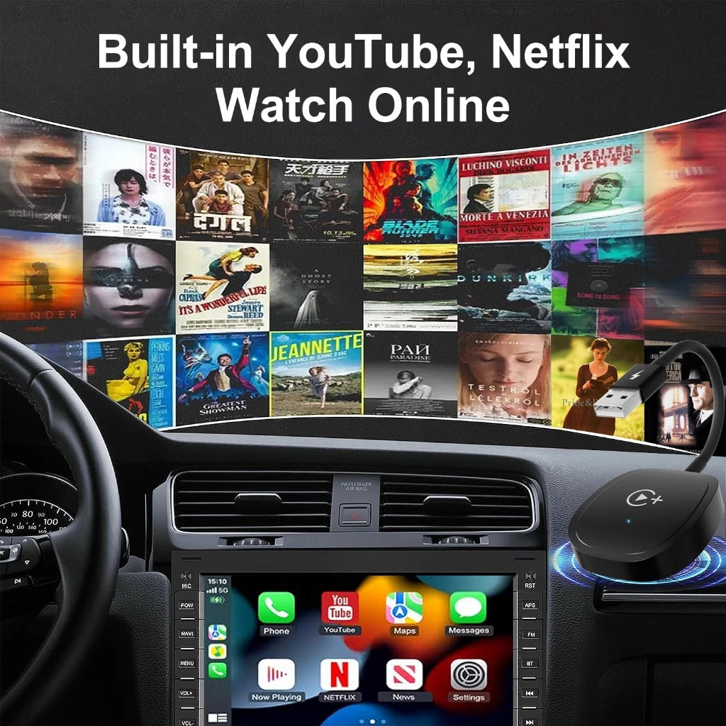 Wireless Apple CarPlay Dongle — Converts Factory Wired CarPlay to Wireless & Supports YouTube, Netflix, and TikTok Streaming